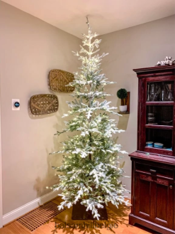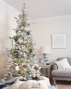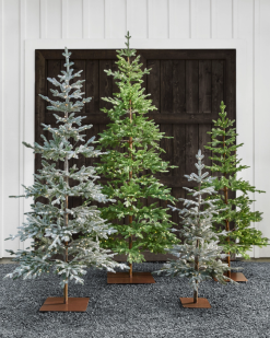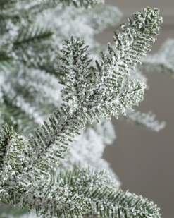 deze kunstmatige kerst boom heeft een organisch silhouet en een zichtbare nepstam voor een meer natuurlijke uitstraling. het lichtgroene, echte naaldblad is zwaar bevroren om het uiterlijk van prachtige met sneeuw bedekte takken na te bootsen.