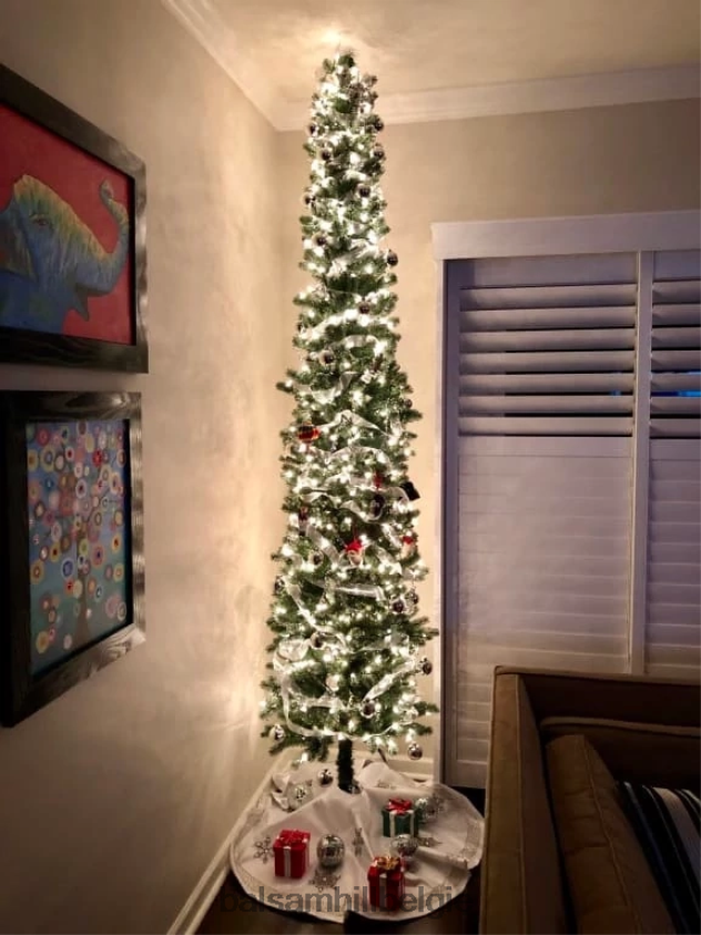 de sonoma slanke potloodkerstboom is een eerbetoon aan het spectaculaire landschap van het panoramische wijnland van Noord-Californië. het slanke silhouet is voorzien van weelderige, lange naalden in een donkergroene tint voor een uitzonderlijk levensechte look.