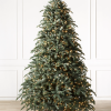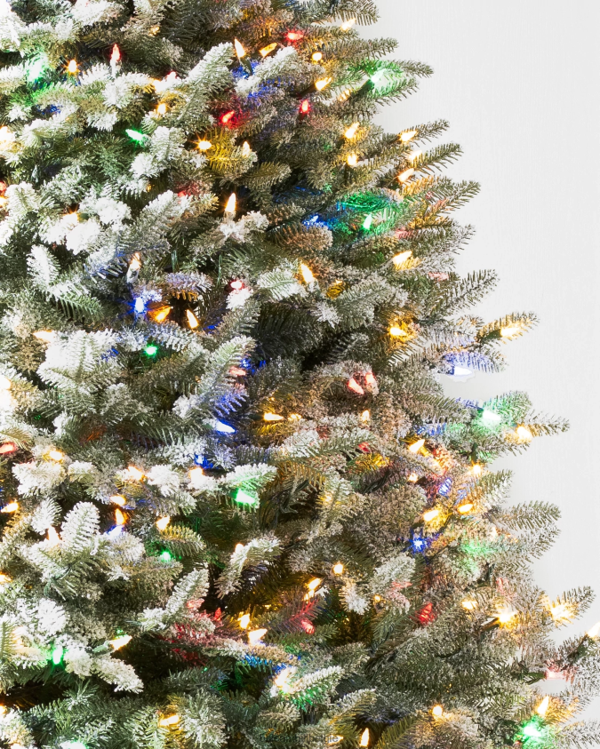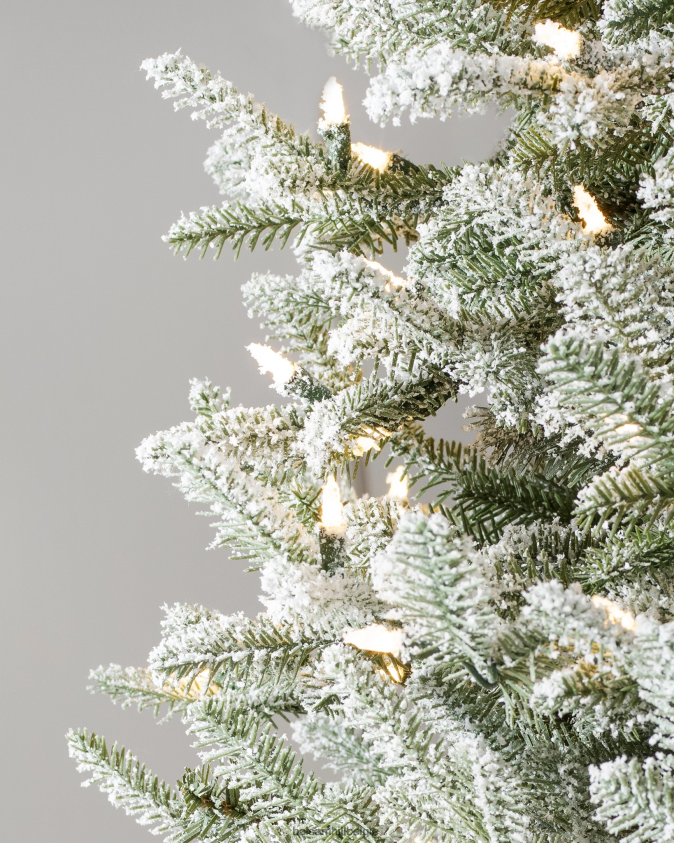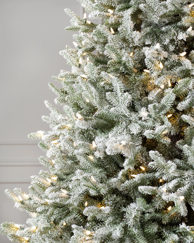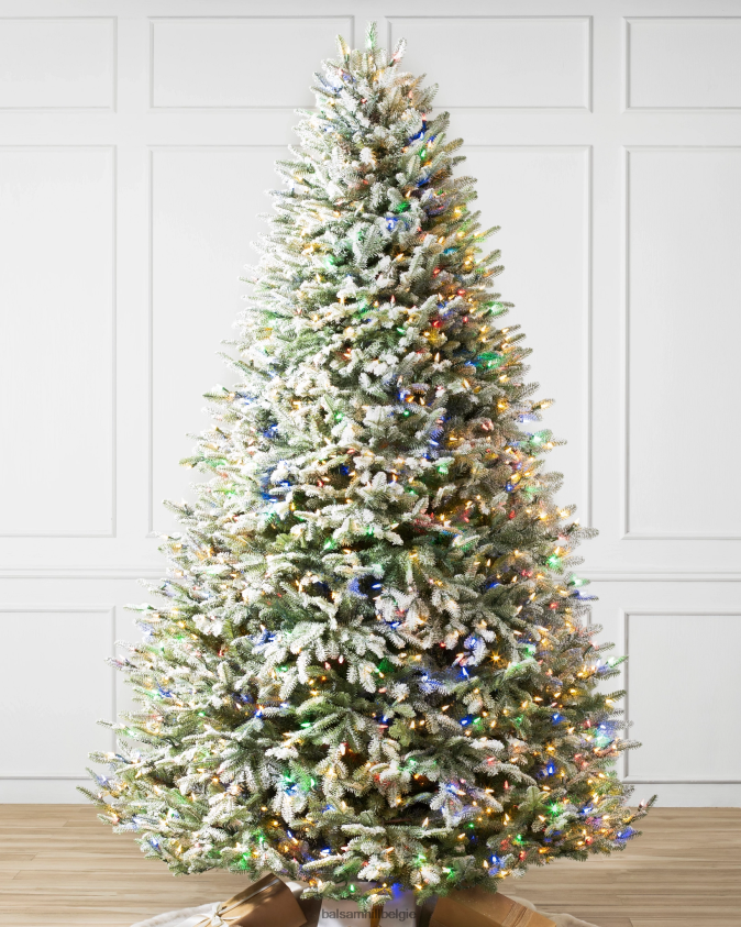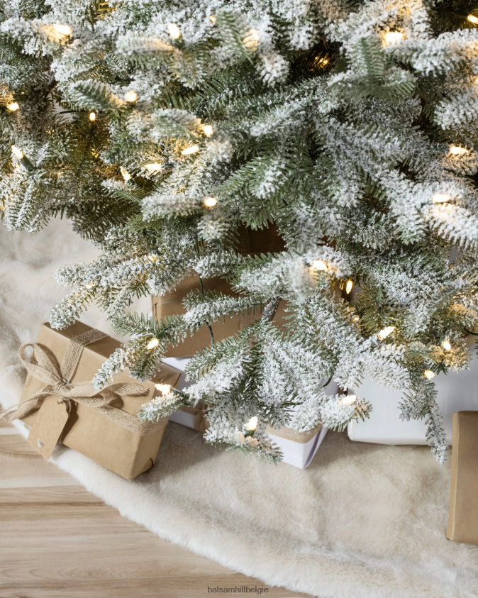ontworpen met een afgeschuinde basis en een gelaagde top, de matte bh-balsemspar bootst een van de meest populaire kerstbomen in Noord-Amerika na. de opwaarts hellende takken zijn voorzien van licht gevlokte naalden met bruin getinte stengels en halfplatte takpunten voor extra diepte.