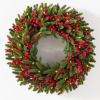 Voeg een feestelijke sfeer toe aan je huis met deze charmante bladercollectie. Rode bessen en metalen ornamenten fleuren uw kerstdecor onmiddellijk op.