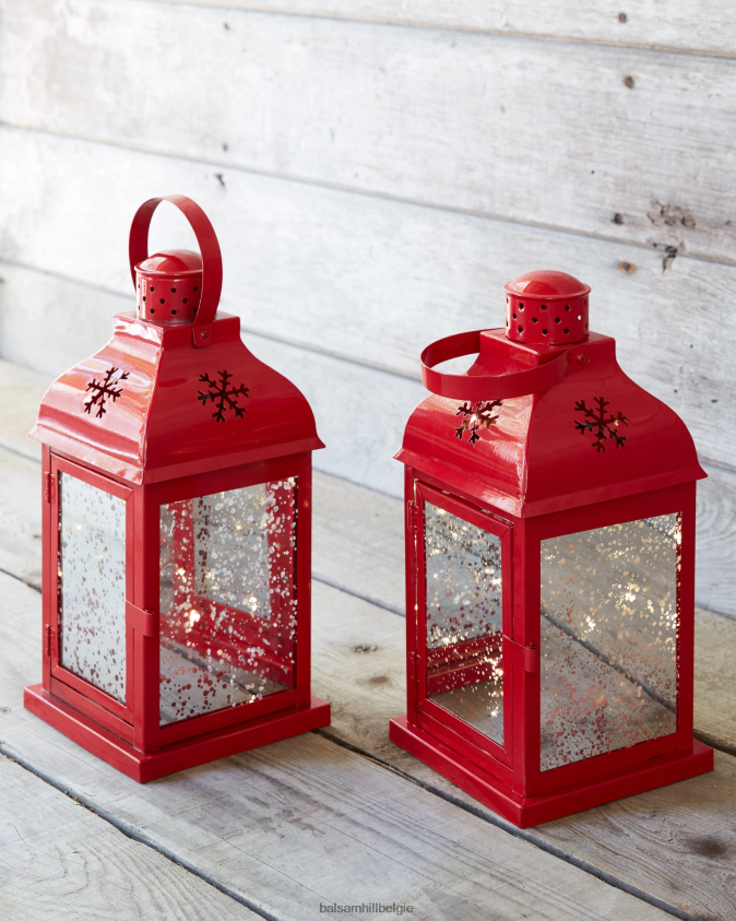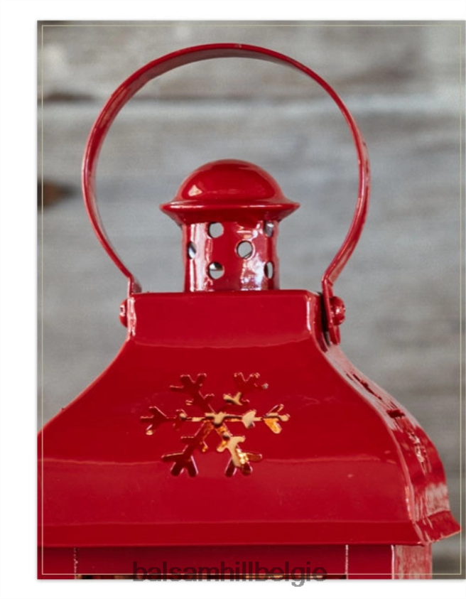 Verlicht deze feestdagen uw paden of entrees met onze prachtige kerstlantaarns. een stevig metalen frame in een feestelijke rode tint is gesneden in een sneeuwvlokontwerp, terwijl de warme gloed van een led-licht door gespikkeld glas straalt.