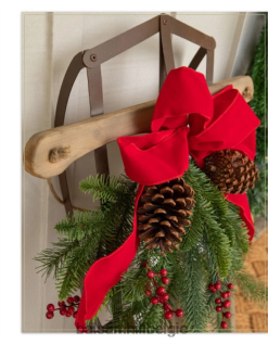 - bestaat uit dennen- en cederbladeren met dennenappels, bessen en een rode strik