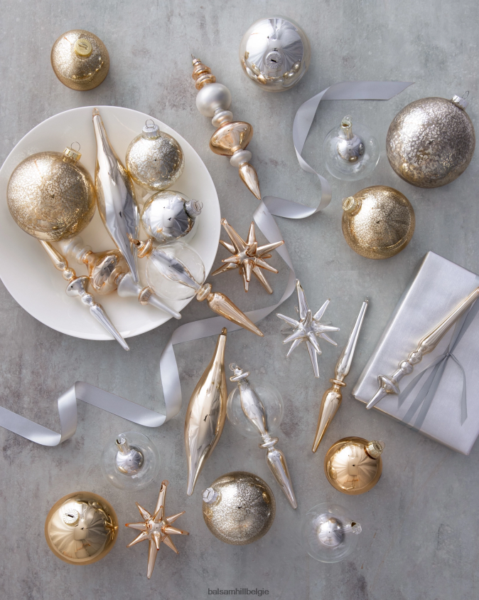 Voeg direct glans toe aan uw boom en seizoensgebladerte. mix en match met uw erfstukversieringen om een strakke en stijlvolle look te creëren.