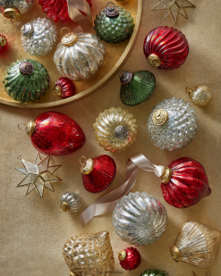 Voeg een luxueus tintje toe aan uw vakantiedecoratie met prachtige ornamenten van kwikglas. mix en match deze vintage accenten met andere bh essentials-collecties of stel ze in als schaalvullers voor tafelbladen en schoorsteenmantels.