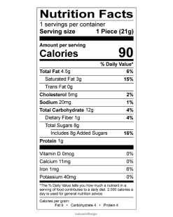 - ingrediënten: karamel, pure chocolade, zoetwarencoating, koffie, melkvet, melkchocolade, pecannoten, zout, zeezout, glucosestroop, dextrine, banketbakkersglazuur, geroosterde pecannoten