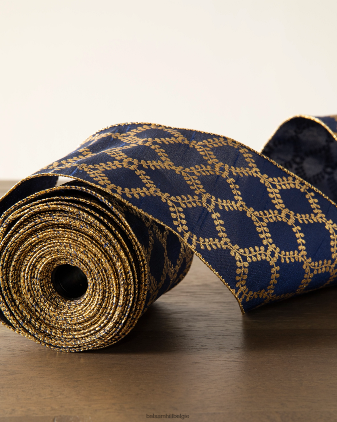 - 10 meter x 10,5 meter marineblauw en goud biltmore kerstlint
