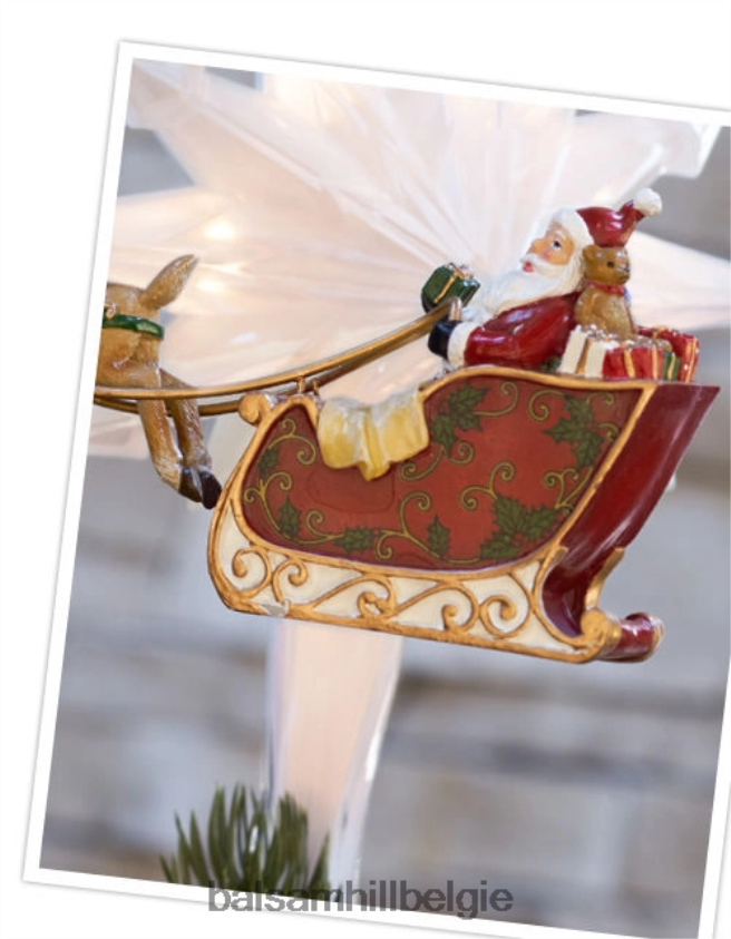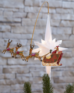 geef je kerstboom een magische finishing touch met de vliegende slee van de kerstman. deze roterende topper zal zowel jong als jong van hart zeker bekoren.