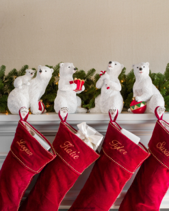 laat onze ijsberen vrolijk over uw kostbare kerstsokken waken. Deze schattige beren zijn met groot kunstenaarschap en realisme gebeeldhouwd en afgebeeld in speelse poses, waarbij ze stoeien met verschillende vakantieverrassingen. kies een van de vier ontwerpen of mix en match om je eigen arctische familie te creëren.