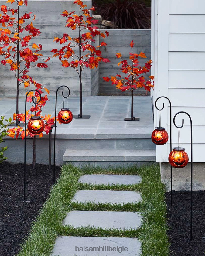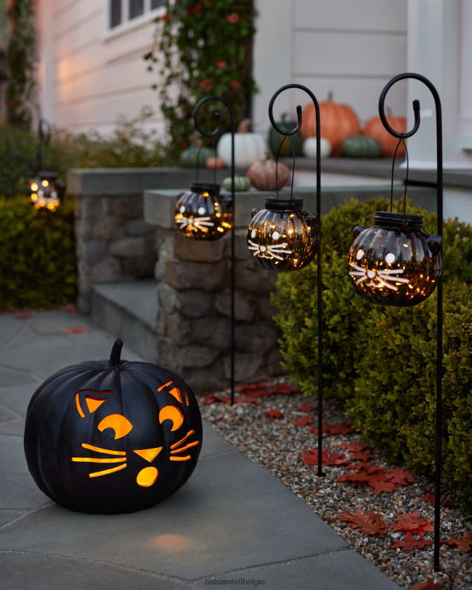 Leid enthousiaste trick-or-treaters naar je voordeur met vriendelijke pompoengezichten. een angstaanjagende gloed verlicht looppaden of veranda’s om een uitnodigend Halloween-tafereel op te roepen.