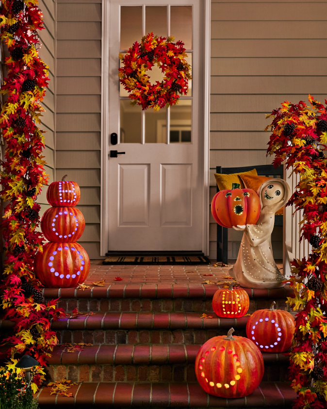 verzin een stevige Halloween-groet voor trick-or-treaters en gasten van alle leeftijden. van kleur veranderende lichten en effecten zorgen voor een helder en feestelijk welkom op uw veranda, terras of pad.