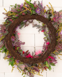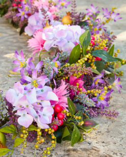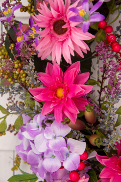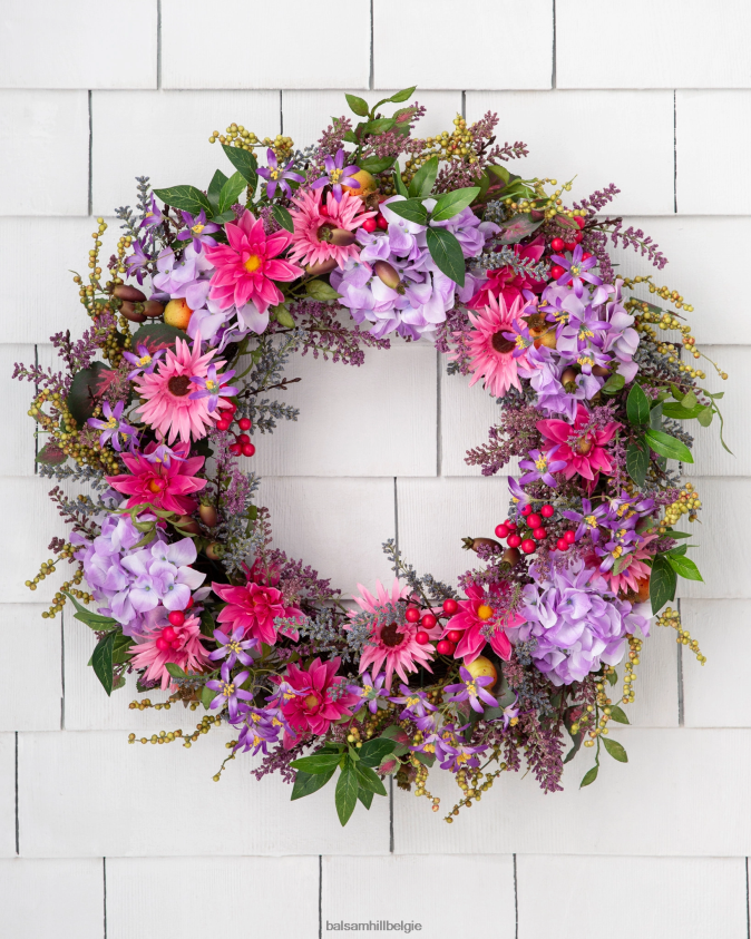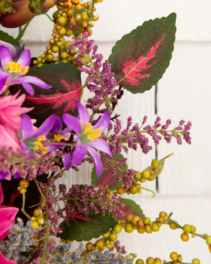 - alle producten in deze collectie bevatten een scala aan realistische lavendel, madeliefjes, granaatappels, rozenbottels, paarse hortensia’s, roze gerbera’s, gemengde bessen en bladeren.