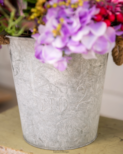 - gevestigd in een witgekalkt houten vating 5” lang x 9” breed x 12” hoog