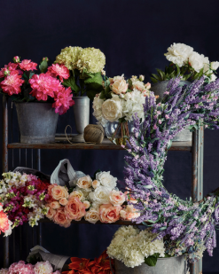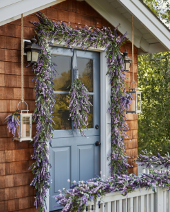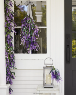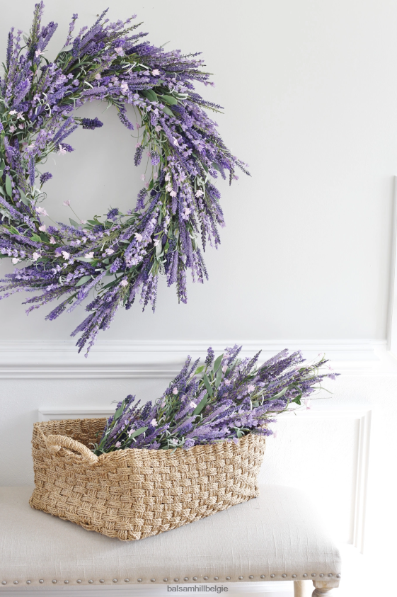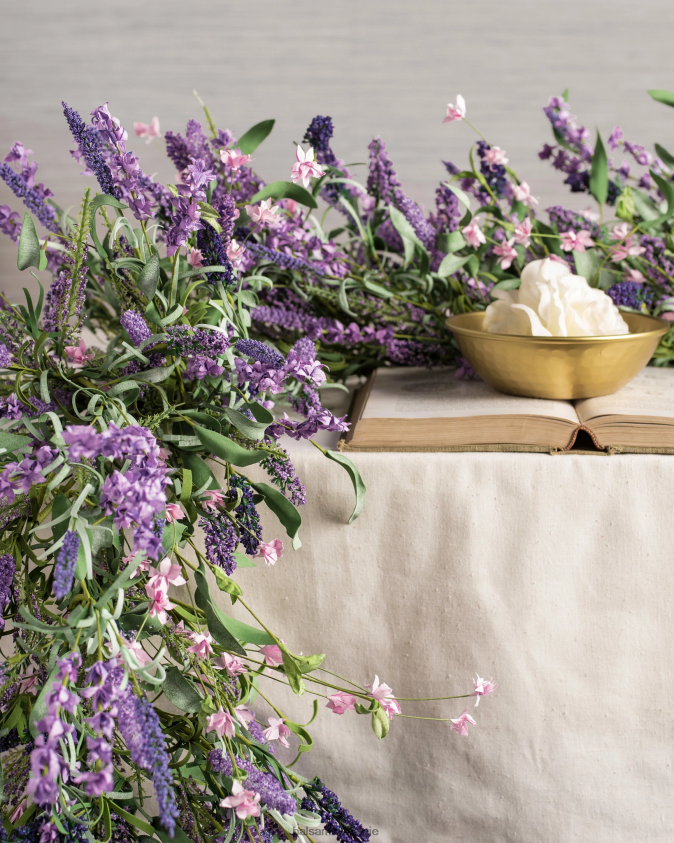 - alle producten in deze collectie zijn voorzien van een scala aan kunstbloemen, waaronder: lang lavendelstengels geaccentueerd met roze bloemen en zilvergrijze bladeren
