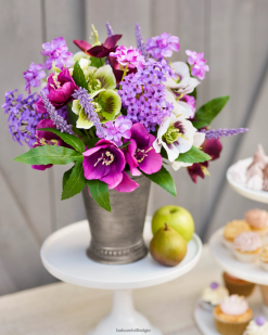 - Alle producten in deze collectie bevatten een scala aan realistische helleborussen, seringen en lavendel.