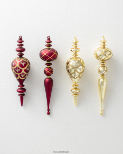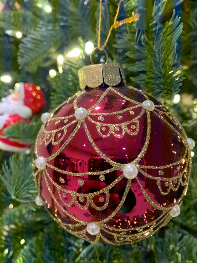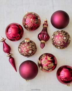 - kenmerkende bollen en eindstukken in wijntinten met glitter- en parelaccenten