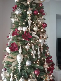 - voor een lichte dekking met alleen ornamenten uit de 35-delige set, overweeg dan twee sets voor een boom van 1,80 meter, drie voor een boom van 2,5 meter en vijf voor een boom van 2,5 meter -10′ boom; verhoog met één set voor een volledigere dekking.