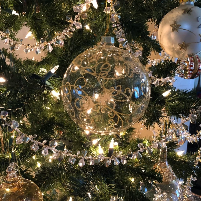 - met diverse ballen en eindstukken in metaaltinten met glitter-, parel- en nep-kristalaccenten